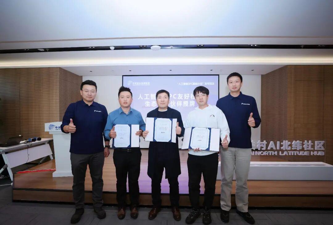 活动中,中关村AI北纬社区为 软积木、开源社、鲸选AI 等 首批人工智能OPC友好社区生态伙伴 授牌。